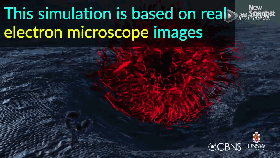麦克吉博士是新南威尔士大学艺术和设计学院的3D可视化美学实验室主管。他以真实的乳腺癌细胞高分辨率扫描数据为依据,使用的技术来构建了这个虚拟世界。扫描的数据来自于昆士兰大学,麦克吉用它们构建成了3D模型,实验室的设计师为其增加了颜色、照明、纹理和动画。