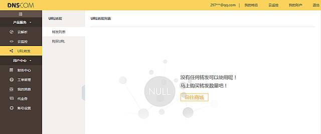 回到我的域名页面,可查看到添加成功的域名。前期准备工作完成,接下来进入服务购买流程。URL转发功能是此次新增加的一个服务,在产品中心栏目找到,点击进去提示我们进入商城购买。