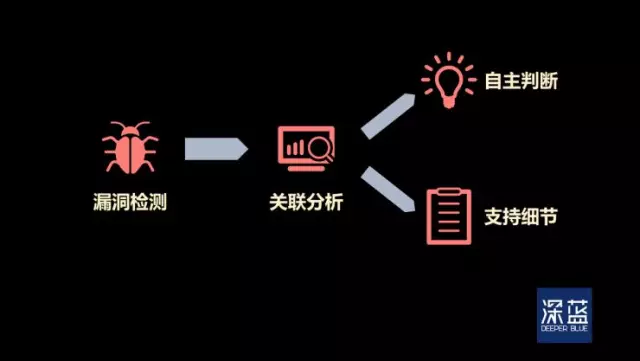 在这方面走得比较前沿的是美国初创企业 PatternEX ,他们推出了一个 “虚拟安全分析师”的智能平台,能够实时追查并理解系统运行数据,最终模拟人类分析师的直觉,形成威胁预测模型。另外,美国国防部也已建立了专门的研究部门 DARPA,着手打造 “自动检测—自主修复” 一体的人工智能系统。