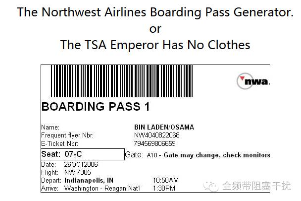 2006年10月,美国华盛顿有位名叫Christopher Soghoian的黑客,利用登机牌中暴露的个人信息漏洞,创建了一个伪造登机牌生成站点“The Northwest Airlines Boarding Pass Generator”,该站点支持在线生成“Northwest Airlines(美国西北航空公司)”的任意时间、人名和航班的登机牌。如下图所示,该站点生成的登机牌不但可以以假乱真,而且支持直接打印。