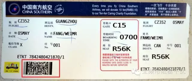 随手在互联网上搜索一张南方航空的登机牌,基于PDF417的二维码,如下图所示。