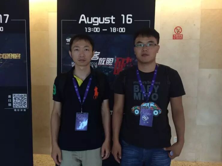 【秦佳杰(左)和郭永刚(右)在 Hackpwn 现场】
