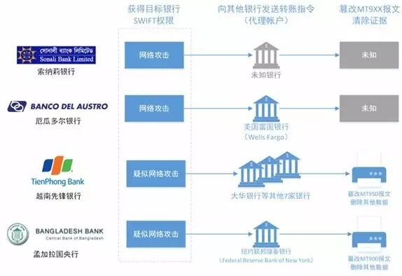 这是一个没有协同的案例,第一我们通过溯源发现在2013年索纳莉就曾经发生过类似的攻击,而且在孟加拉国央行发生SWIFT案件后,越南先锋银行、厄瓜多尔银行等多家银行也先后遭受到了类似的攻击。